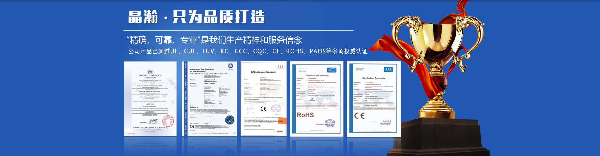 樂清市晶瀚電子有限公司始創(chuàng)于2004年。座落于被授為“國家電子元件生產(chǎn)基地”、“精密模具制造基地”——樂清市境內(nèi)。是一家專業(yè)開發(fā)、生產(chǎn)各種船形翹板開關、AC電源插座、門控開關、電動工具開關、按鈕開關、微動開關及過載保護開關的廠家。公司產(chǎn)品廣泛應用于電子儀器儀表、機床自動控制......